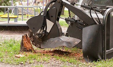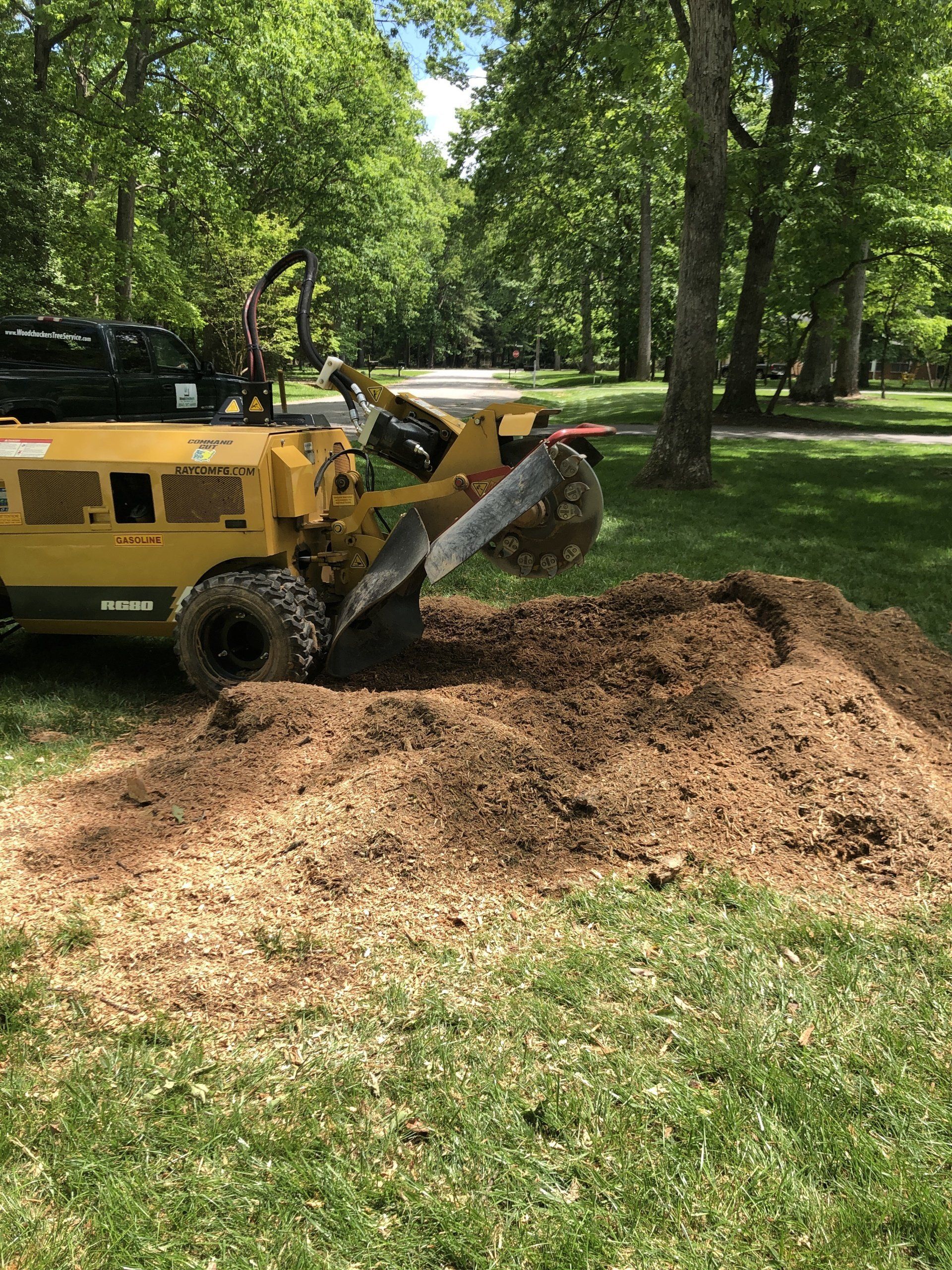 We call it stump grinding because that's exactly how it's done. A large rotating blade chips away at the stump until a small crater remains and the stump is virtually gone. After that, we fill the crater and your stump problems are over.